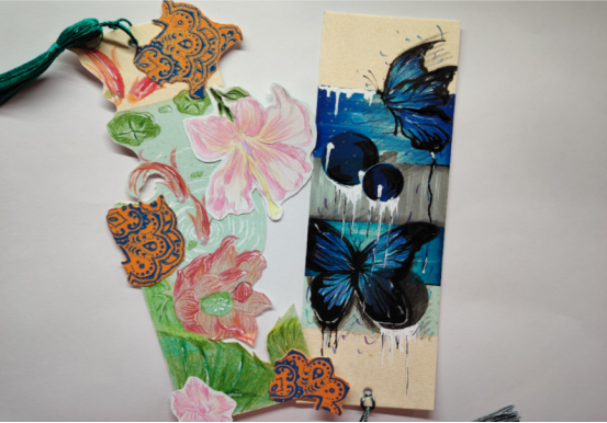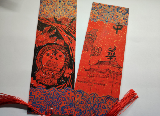 活动采用手绘书签的形式进行,同学们领取空白书签,手执画笔,充分发挥创意,创作出主题多样、精彩丰富的作品。有的以自然风光为蓝本,用细腻的笔触勾勒出了祖国的青山绿水,表达了尊重自然、顺应自然、保护自然的绿色发展理念;有的通过描绘中华文化的精髓,如传统节日、历史典故等,展现了深厚的文化底蕴与民族自豪感;有的在设计中巧妙地融入天安门、国徽等具有深厚红色文化底蕴的元素,传递了正能量,表达了深厚的爱国主义情怀......每一幅作品都像是同学们心灵的窗口,传递出对祖国的赤诚之心和对美好自然环境的深切期盼。