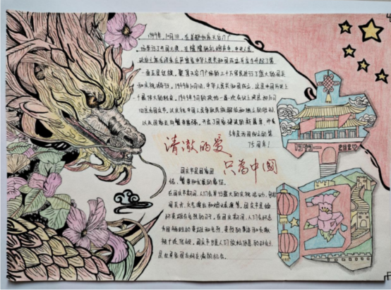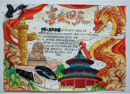 同学们结合专业特色和个人感悟,创作了一幅幅内容丰富、形式多样的手抄报作品。有的用细腻的笔触,描绘了天安门城楼、华表柱等建筑的雄伟庄严;有的用色彩斑斓的画笔,勾勒出了五星红旗迎风飘扬、龙腾虎跃的壮丽景象;有的用生动的线条,展现了祖国大好河山的壮美与辽阔。每一幅作品都是对祖国繁荣昌盛的深情祝福,都是对青春梦想的执着追求。通过活动组委会公开评审,最终评选出一等奖1名,二等奖3名、三等奖6名。