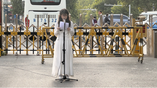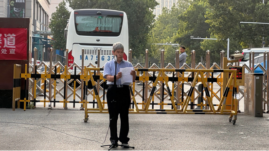 郭海山发表国旗下讲话,他指出,西迁精神是中国高等教育事业发展中一笔宝贵的精神财富,体现了老一辈教育工作者的爱国情怀和奉献精神。作为新时代的老员工,应该继承和发扬西迁精神,努力学习,为祖国的发展贡献自己的力量。