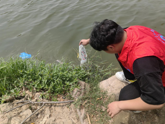 6月2日,志愿者们来到贾鲁河滨河公园,仔细捡拾、清理河畔和公园内各个角落的垃圾,向公园内的市民们发放环境保护宣传手册,以实际行动呼吁群众不乱扔垃圾、从自身做起,共同维护干净、整洁的河流环境。