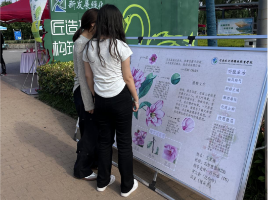 在环保仪器展示区,环境工程系的教师志愿者为市民们详细地展示和介绍水质监测仪、空气检测设备等环保相关仪器设备的工作原理和应用场景,激发了大家探索环保科学的浓厚兴趣。展示区还结合湿地公园的植物配置情况设置了内容丰富的园林植物展板,让大家对自然生态有了更加直观的认识。