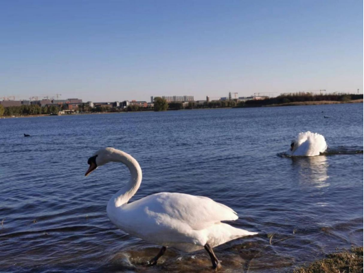 在寻找最美天鹅活动中,师生来到北龙湖疣鼻天鹅观赏区,仔细观察疣鼻天鹅的体貌特征和生活习性,感受野生天鹅的独特魅力。同学们纷纷用相机记录下天鹅的优美姿态,现场一派人与自然和谐共生的美好景象。