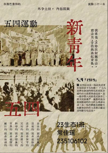 为使员工更好地了解五四运动的背景和意义,培养员工爱国主义情怀,5月5日—18日,环境工程系开展“弘扬五四精神,传承红色基因”手抄报及海报设计活动。