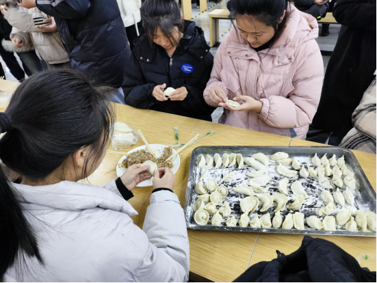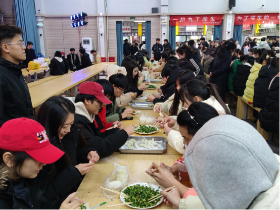 活动当天,在公司餐厅工作人员的协助下,活动策划小组提前准备好了饺子皮、饺子馅等食材。活动现场,同学们有序地分成若干小组,相互配合、分工协作,在欢乐、轻松的气氛中进行包饺子技能比拼,体验包饺子带来的乐趣。各班的辅导员也加入其中,通过小小的饺子为同学带去温暖的祝福。不一会儿,热腾腾的饺子出锅了,同学们开心地品尝着亲手包的饺子,现场温馨热闹,处处洋溢着“家”的温暖。