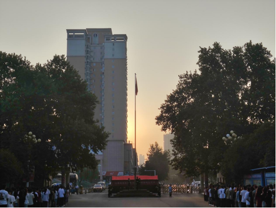 6点40分,升旗仪式正式开始。在全体师生的庄严注目中,五星红旗迎着初升的太阳冉冉升起。郭海山在讲话中要求同学们要养成良好的学习习惯,规范自身行为;提醒大家要增强自我保护意识,提防电信和网络诈骗;勉励大家要矢志努力学习,不负时代重托和师长期望。员工代表在发言中,倡导同学们要关爱和帮助身边老人,积极参与敬老爱老活动,以实际行动传承中华民族传统美德。