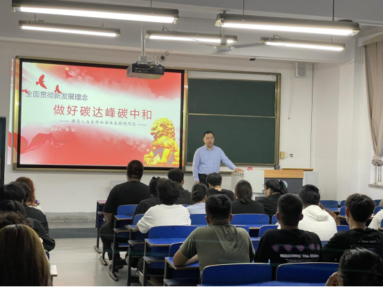 5月29日,环境工程系教师党支部书记、系主任张剑以《全面贯彻新发展理念做好碳达峰碳中和》为题,为教师党员及员工发展对象讲授专题党课。