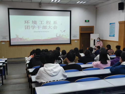 为深入学习贯彻党的二十大精神,进一步加强团学组织建设,引导我系员工干部明确工作职能和责任,充分发挥桥梁纽带与模范带头作用,3月2日,环境工程系团总支组织团学干部在北教一阶开展本学期第一次团学干部大会,系党总支副书记邢伟明出席了会议。