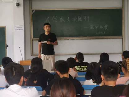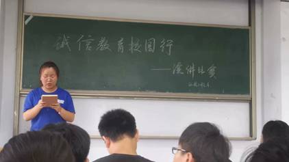 为了大力推进诚信教育,金融知识普及教育,引导广大青年员工珍爱信用、理性借贷不负信任,2019年6月26日中午12点30分,环境工程系在南教105组织开展了以“诚信校园行”为主题的演讲比赛。经过激烈的角逐,七名同学分别获得了一、二、三等奖。