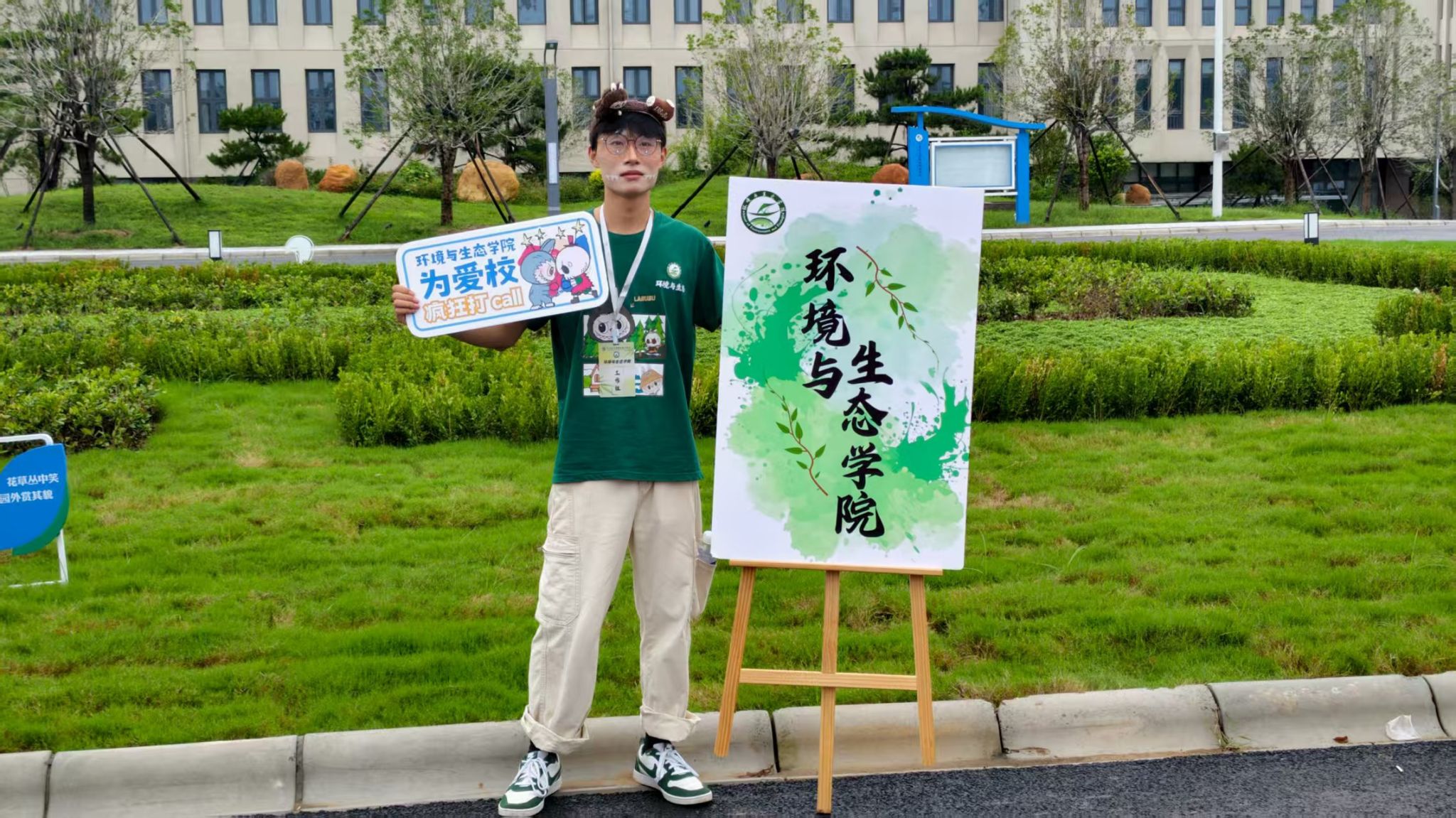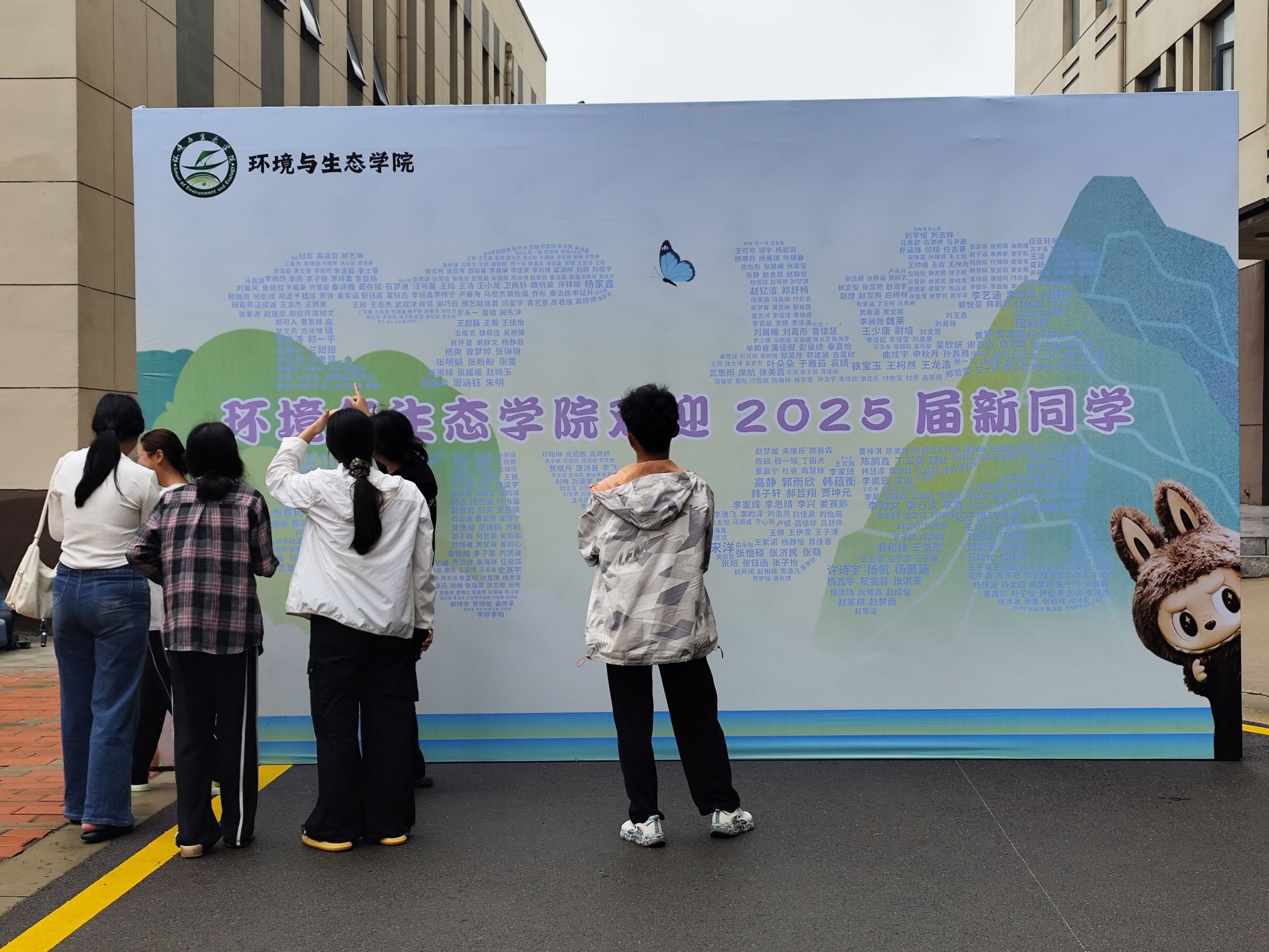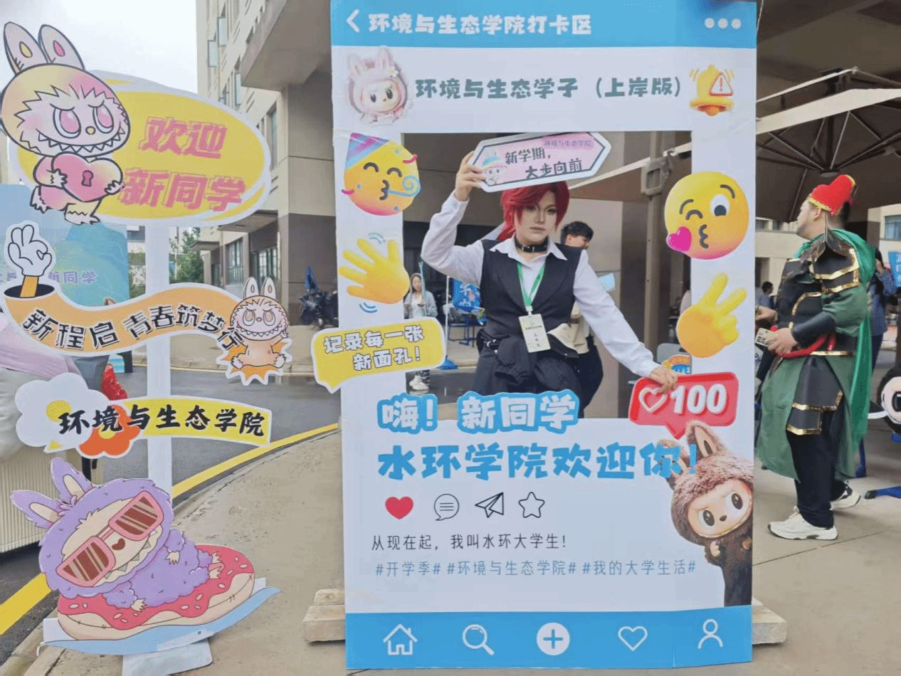 今年,公司将创新理念融入迎新实践,打造了一系列互动展品。其中,“新生合影墙”成为焦点,上面清晰地印着每一位新生的姓名。新生们纷纷在此驻足,兴奋地寻找自己的名字。此外,公司还定制了多种手持牌和合影框,如“你好,环境人er”、“执生态之笔,书青春华章”等标语,这些设计不仅提升了迎新的仪式感和互动性,更让新生在踏入校园的第一时间,就通过沉浸式体验直观感受到专业的特色与魅力,使报到成为一场生动而深刻的“专业初体验”。