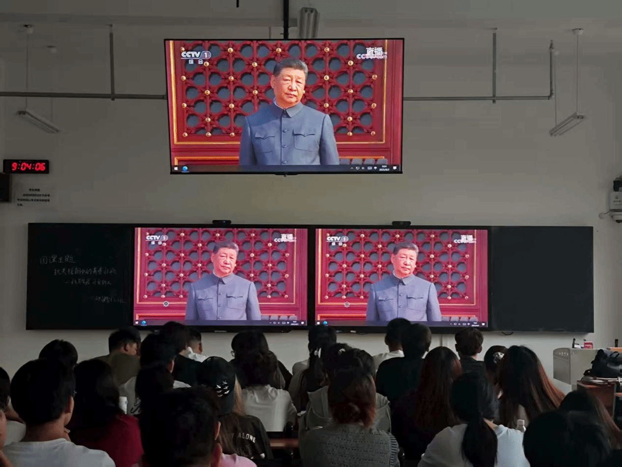 师生们认真学习了中共中央总书记、国家主席、中央军委主席习近平同志的重要讲话。正义的信念不可动摇,和平的期盼不可阻遏,人民的力量不可战胜。任何时候,我们都要弘扬全人类共同价值,坚定捍卫国际公平正义,让世界正气充盈、乾坤朗朗;都要坚持走和平发展道路,坚定守护世界和平安宁,携手构建人类命运共同体;都要以人民之心为心、以天下之利为利,为增进人民福祉而不懈努力。