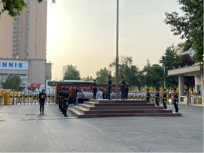 伴随着激昂的《义勇军进行曲》,鲜艳的五星红旗冉冉升起,全体同学行注目礼,齐唱国歌。系党总支副书记邢伟明进行国旗下讲话,要求广大青年员工深刻领悟五四运动“爱国、进步、民主、科学”的精神内涵,在政治上忠于党、忠于人民,思想上甘于奉献、砥砺奋进,行动上只争朝夕、不负韶华,在学习和生活中继承和弘扬五四精神。20级员工杜亚平同学代表发言,呼吁同学们积极响应“学党史、强信念、跟党走”的伟大号召,学好党的百年辉煌史,传承党的优良红色基因。
