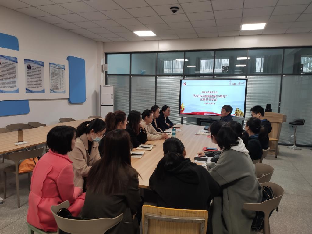 2020年10月27日下午,环境工程系党总支在综合楼二楼实训室开展“纪念抗美援朝胜利70周年”主题党日活动,党总支全体党员参加。