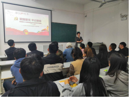 10月24日下午,环境工程系在综合楼407教室组织开展党课学习,系员工党支部书记董晓明以“爱国爱党,牢记使命”为题为2019级有入党意愿的同学、18级入党积极分子80名员工上了一堂精彩党课。