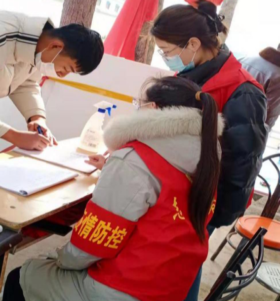 “关键时刻,社会各界都在为疫情防控奉献着自己的力量,体现了大家众志成城抗击疫情的信心和决心。能为社区做一点贡献是我的荣幸,我始终坚信我们能够打赢这场没有硝烟的战争。”1月11日-16日,20级环艺校企3班员工李欣雨在安阳市内黄县井店镇元卜村社区担任疫情防控志愿者,在疫情防控点值班,协助社区工作人员登记出入人员信息、测量体温、宣传疫情防控知识、登记核酸检测信息等。