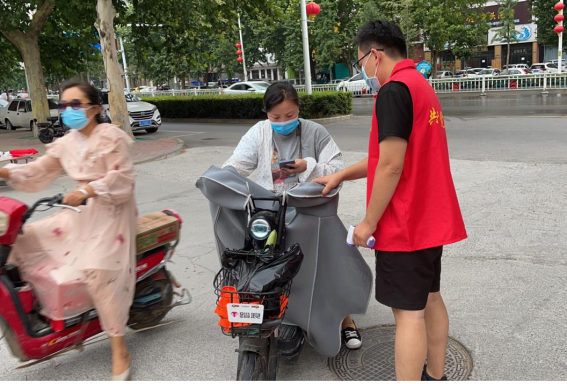 20环监2班郝益葳:8月5日,身为入党积极分子的郝益葳接到社区防疫志愿者招募通知后,第一时间加入了志愿者队伍。此后,每天早上8:00到下午6:00,她准时在小区卡点值班,负责进出人员扫码、测温、消毒等工作。由于小区封闭,业主们的快递只能堆放在小区门口待业主自行领取。为方便大家领取快递,她将每一栋业主的快递分类摆放,避免了人员扎堆聚集现象。此外,由于外派配送员不能进入小区,她亲自将外卖给业主送到家。她说:“卡点工作虽然很热很累,但在忙碌的志愿服务中,我深深感受到了为他人服务的乐趣和意义。”